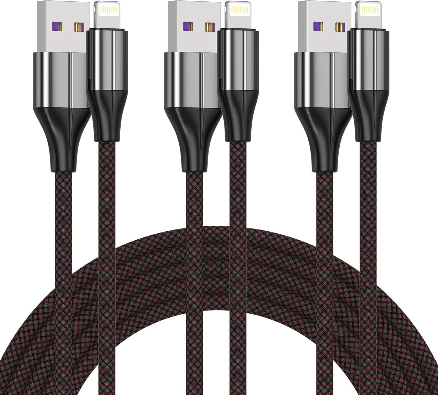 iPhone Charger Cable [MFi Certified], 3 Pack 6 Foot Nylon Braided Lightning Cable, Compatible with iPhone 11/Pro/X/Xs Max/XR/8 Plus /7 Plus/6/ iPad (Black)