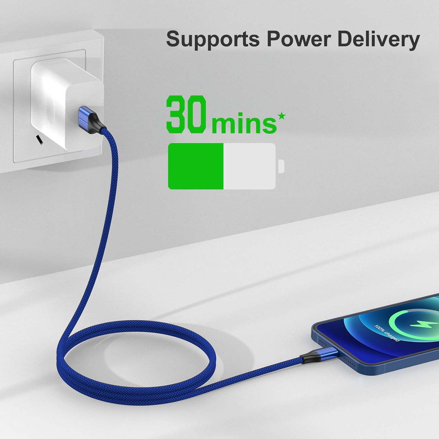 [MFi Certified Lightning Cable,3 Pack 6 Ft iPhone Charger Cable & Data Sync Fast 6 Foot Nylon Braided Cord Compatible with iPhone Xs max/xr/x/8/8 Plus/7/7plus/6/6s Plus/5s/5,iPad (Blue)